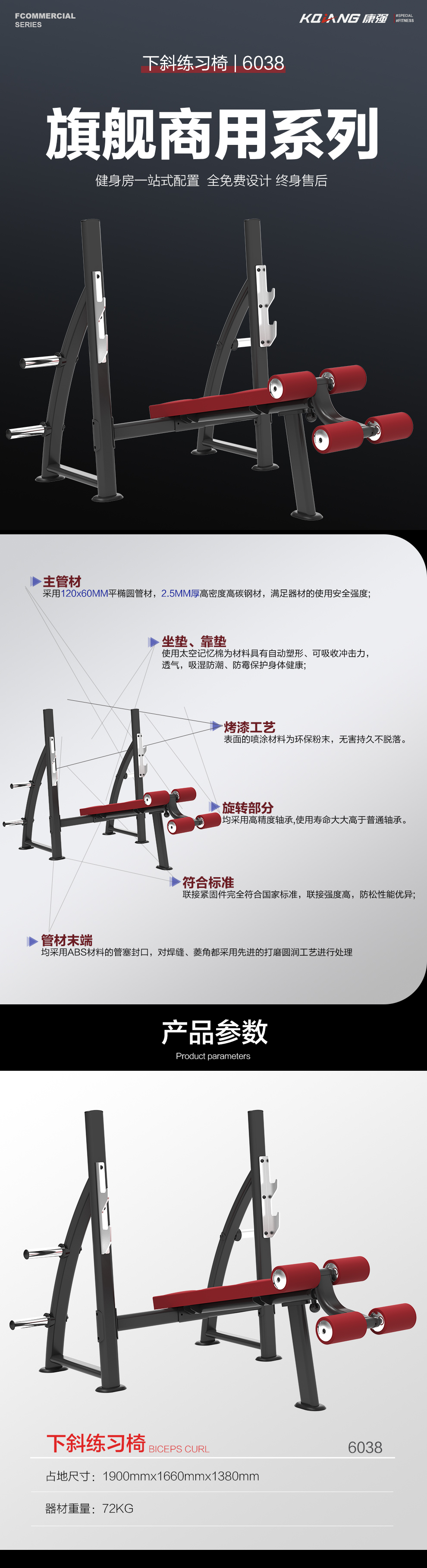 好博下斜练习椅卧推架商用健身器材健身房团购综合训练器 6038下斜练习椅